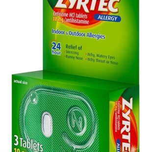 Zyrtec Tabletas para aliviar la alergia las 24 horas, 10 mg de cetirizina HCl antihistamínico, tamaño de viaje, 3 unidades 10