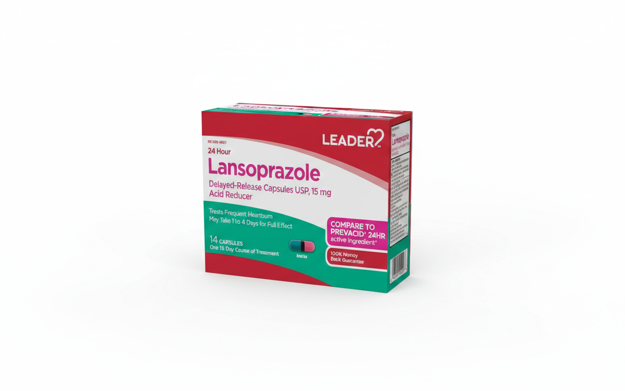 Lansoprazole delayed release (Leader/Cardinal Health) es una opción práctica para apoyo continuo en acidez y reflujo. Útil para quienes buscan cobertura sostenida en Puerto Rico, ideal para uso dentro de una rutina diaria.